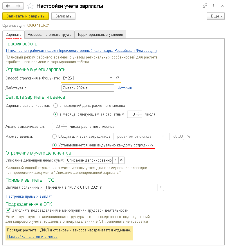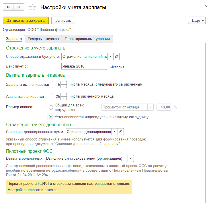 Как в 1с настроить выплату аванса