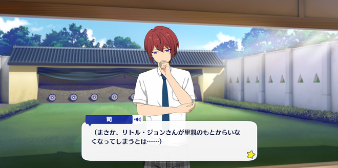 Юзуру: Мне искренне жаль, Цукаса-сама. Стрельба из лука может быть экстерриториальным местом, но, тем не менее, я приношу свои извинения за то, что привел на сюда животное.