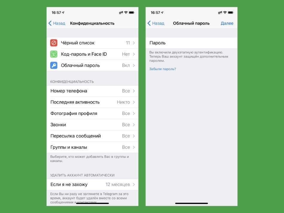 Как включить облачный пароль в телеграм