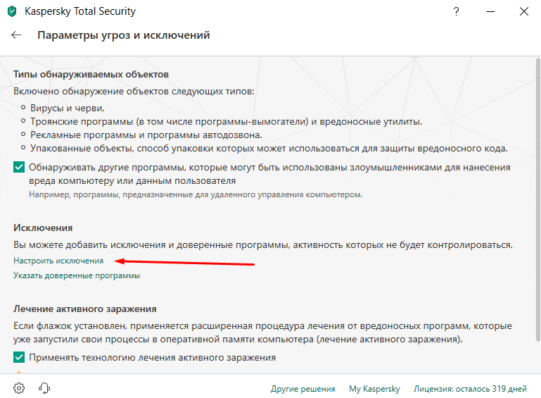 Как внести программу в исключения