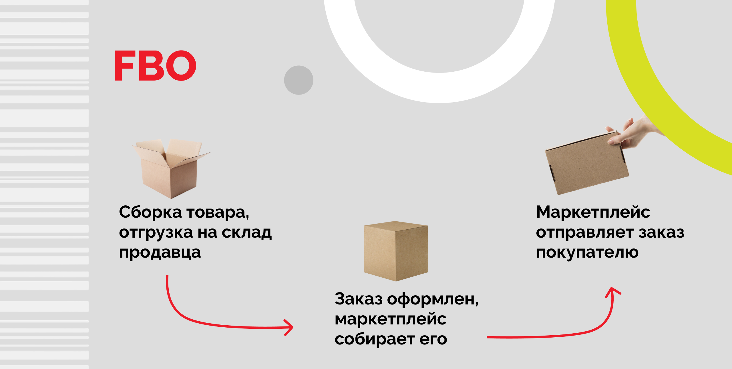 Fulfillment by Operator или FBO — это схема, при которой маркетплейс на своем складе принимает и хранит товары, собирает, упаковывает заказы и доставляет их до покупателей, а также обрабатывает возвраты.