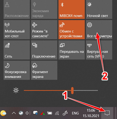 1. Для этого откройте настройки, нажав на значок уведомлений, а затем выберите «Все параметры» (аналогичное действие можно выполнить, используя комбинацию клавиш Win + I).
