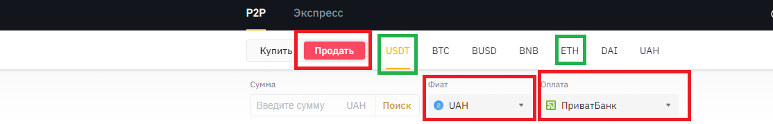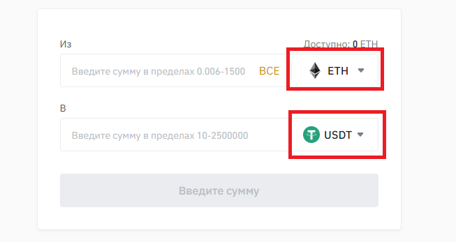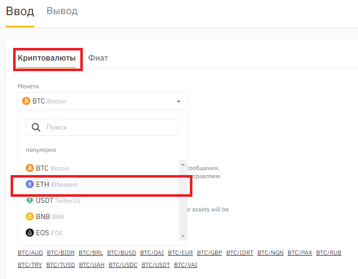 Здесь выбираем ETH и USDT