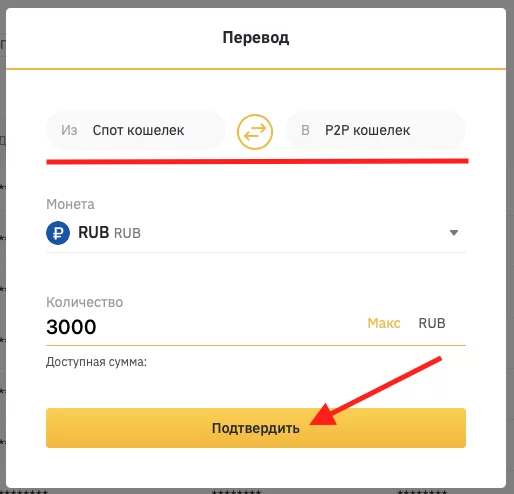 Переводим средства на P2P кошелек