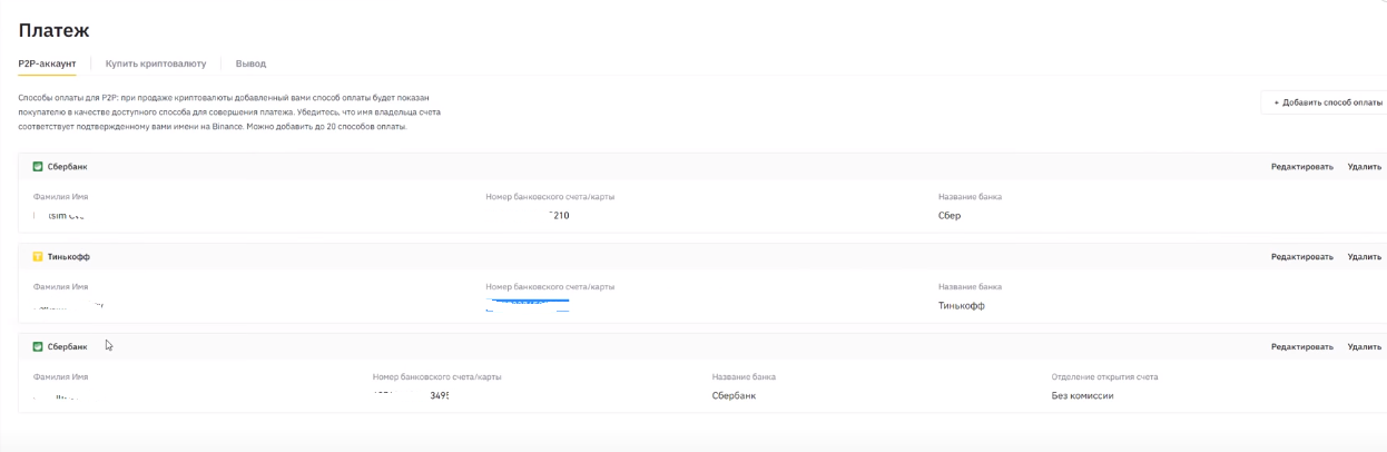 Вывод средств на карту (P2P обмен)