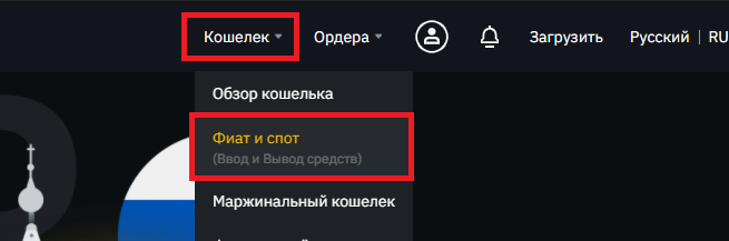 Для этого переходим в раздел "Фиат и Спот"