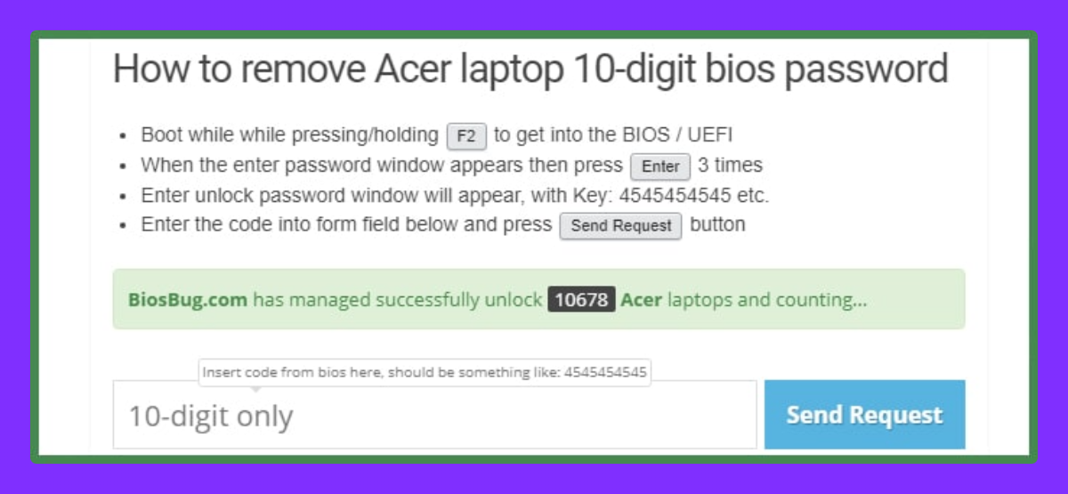 Как удалить 10-значный пароль BIOS ноутбука Acer