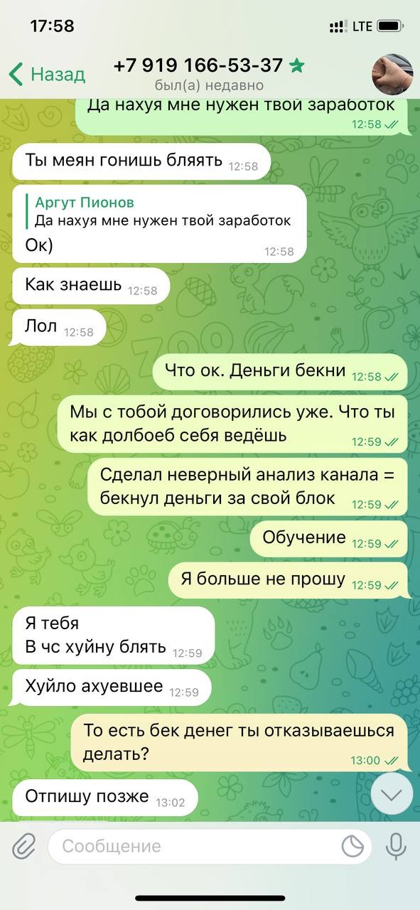 Закончилось все это уже не так радужно как начиналось, ведь после моего отказа и вполне адекватным разъяснением что канал - хуйня он начинает нытье в стиле "Я тут обучаю тебя а не ты" и "Если все знаешь сам зачем я вообще нужен". Эта мартышка редко что то печатает своими сардельками и излагает свои мысли в войсах. Снова скажу, что уже на этом этапе у меня была неприязнь к человеку из-за его неумения адекватно реагировать на критику ну и недоверие конечно же... Но я человек скупой, не зря же 80к заплатил, надо идти до конца.