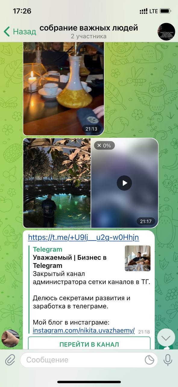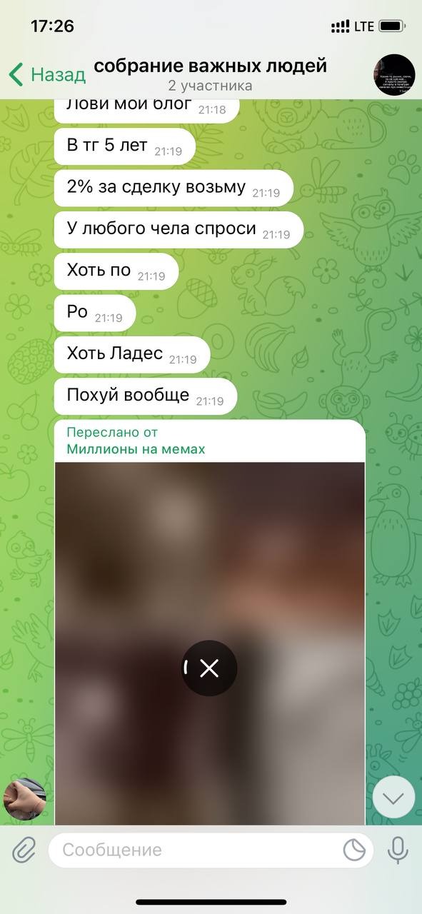 Тут конфа с продавцом канала, где мы уже обсуждаем через кого пройдет сделка. НикитОчка рвет жопочку чтобы сделку провели через него начиная спамить какой то хуйней) Мы с продавцом(хотя он тоже хуесос) конечно кринжуем что этот окорочек кидает куча хуйни где он с кем то катается на гелике и т.д.