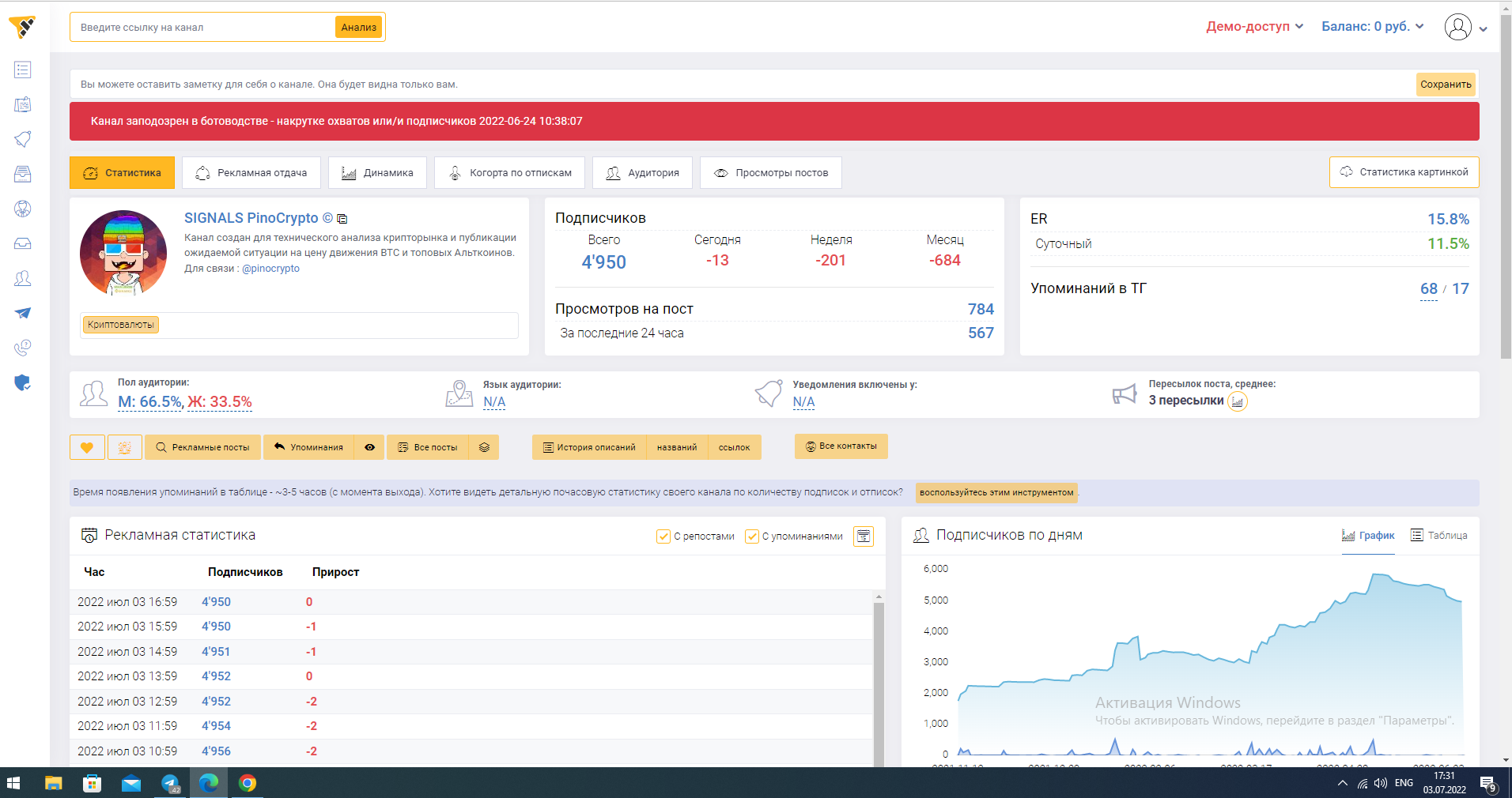 На тот момент охват был в районе 2 тысяч. Тут не нужно быть крутым телеграммером чтобы понять что канал хуйня. Но мой любимый учитель выставил это под соусом "Я тебе так и быть отдам его всего за 400". Это было конечно сильным тригером для меня чтобы просто забить хуй и перестать с ним взаимодействовать, но жадность фраера сгубила)