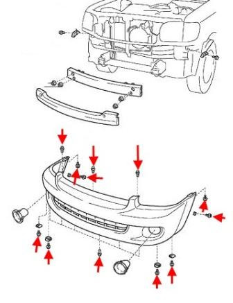 Как закрепить бампер тойота