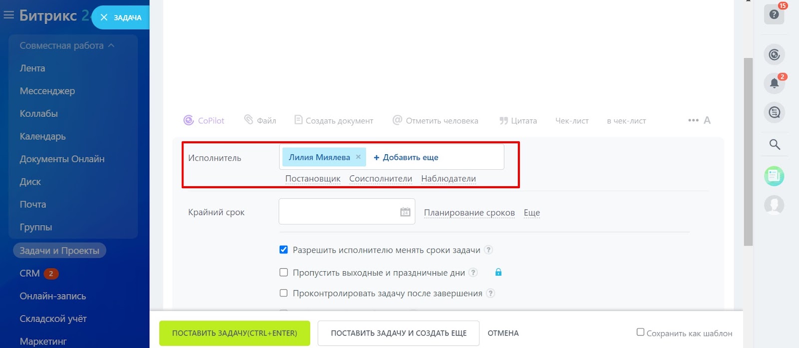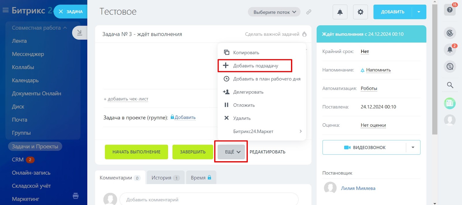 Как закрыть задачу в битриксе