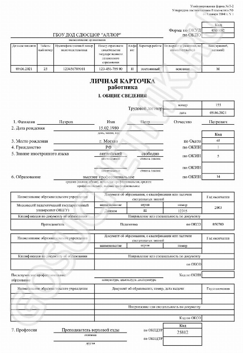 Как заполнить личную карту