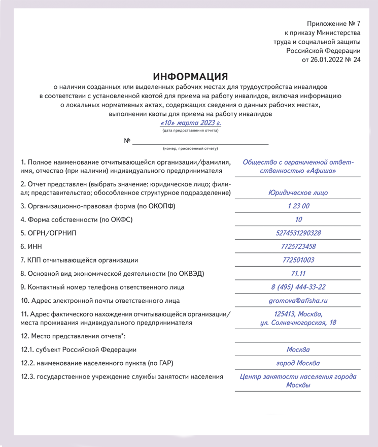 Как заполнить отчет по инвалидам