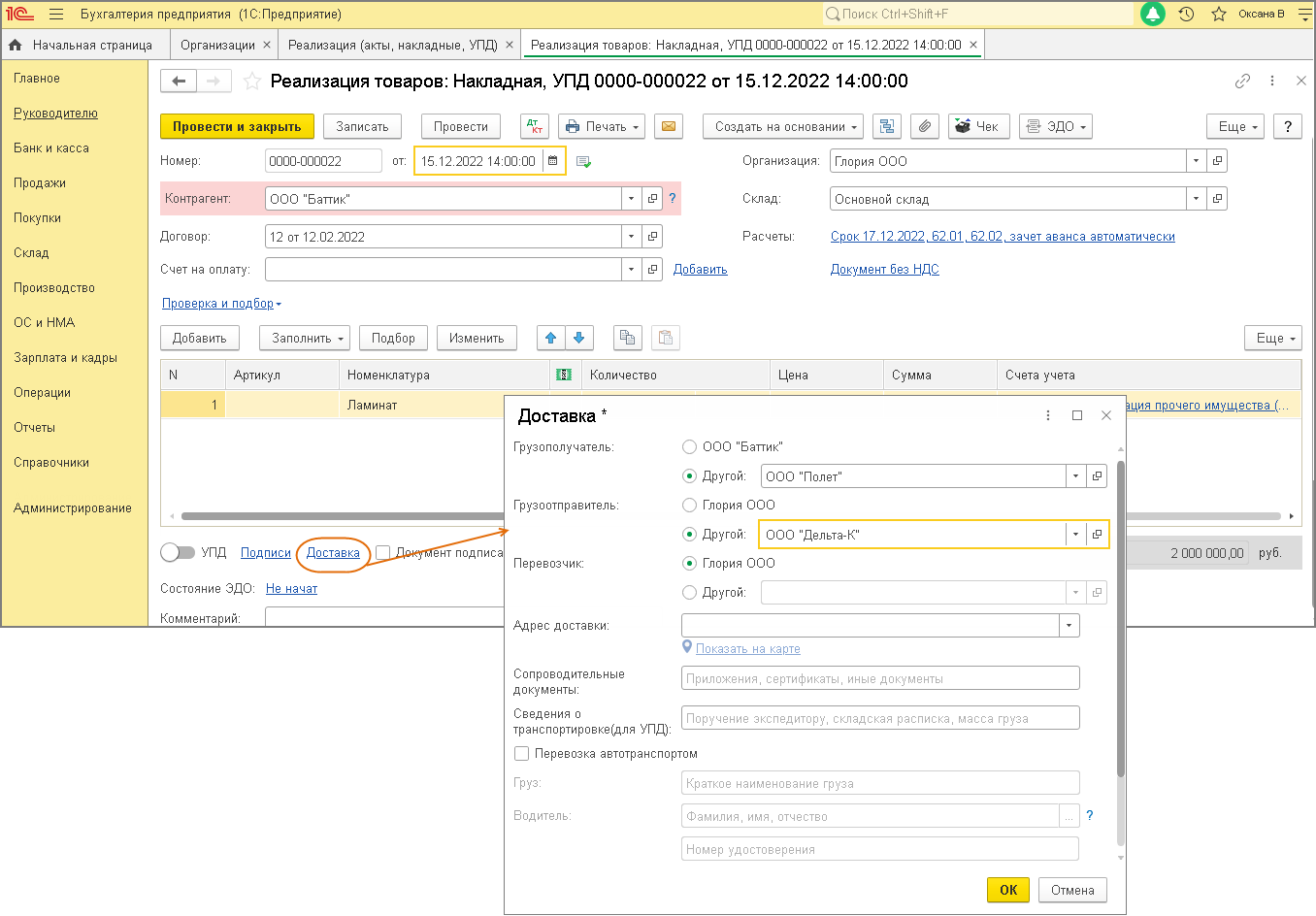 Как заполнить упд в 1с 8.3