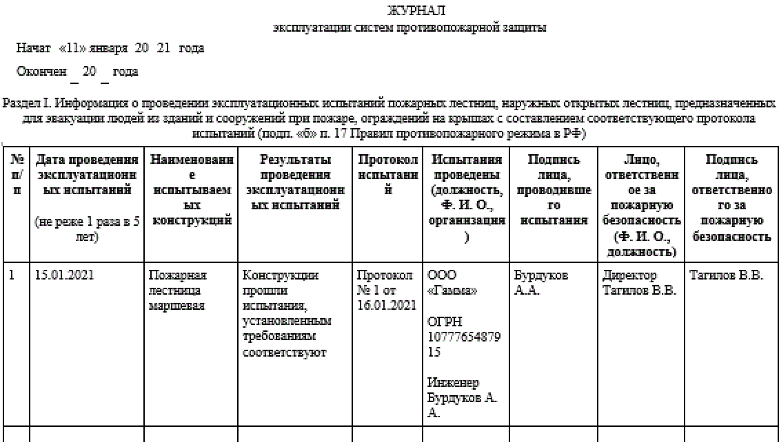 Как заполнить журнал огнетушителей образец заполнения 112 фото