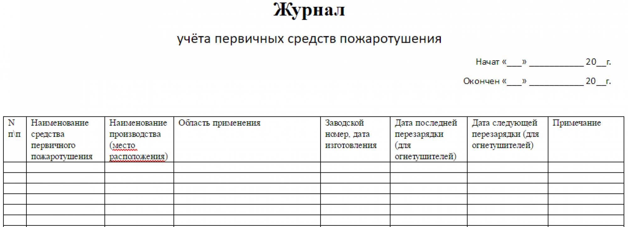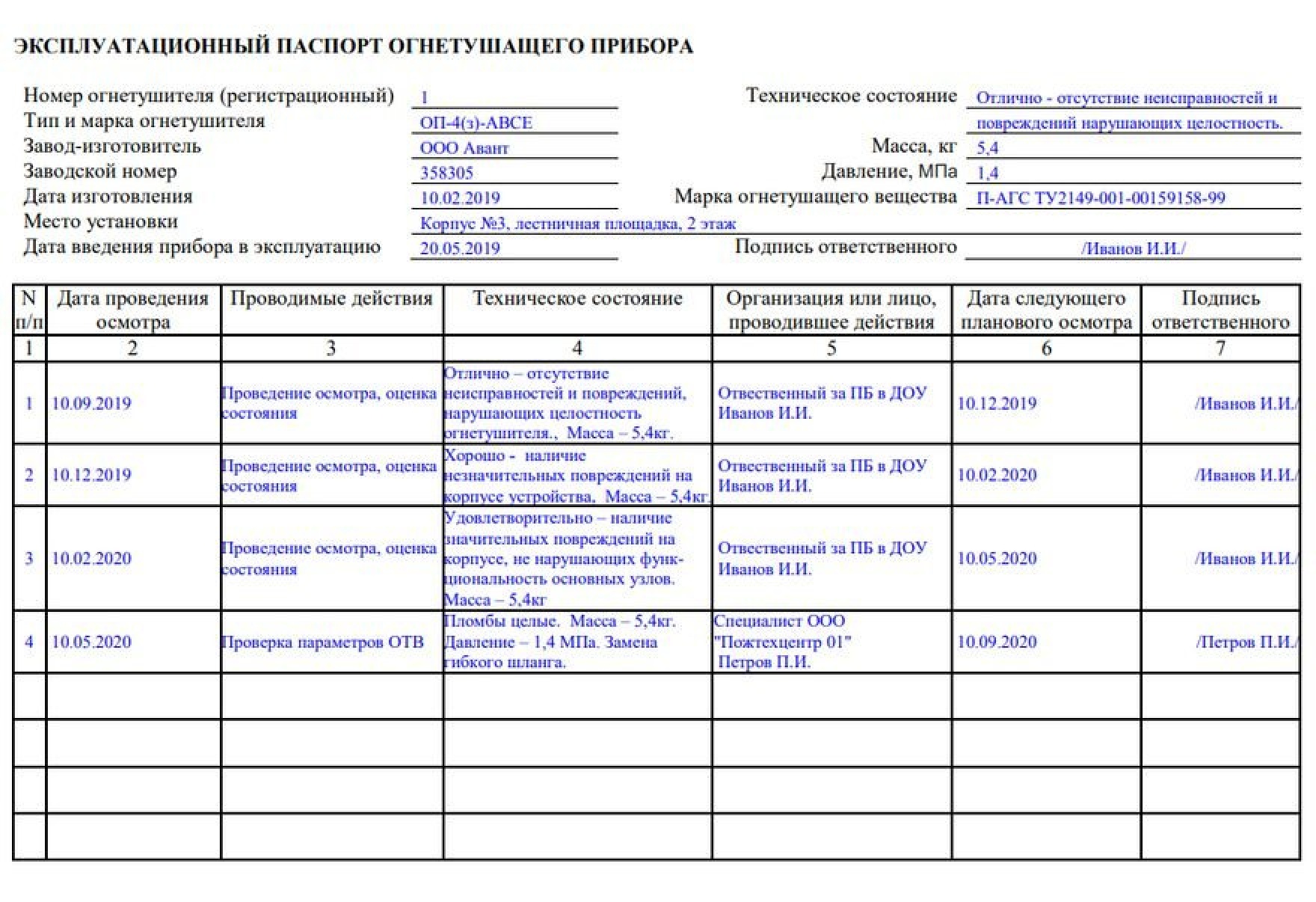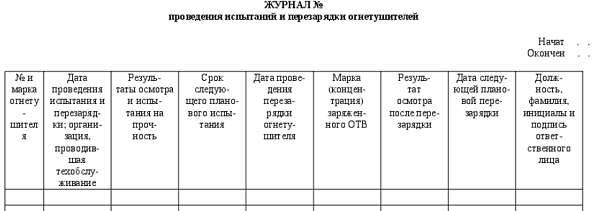 Как заполнить журнал огнетушителей образец заполнения