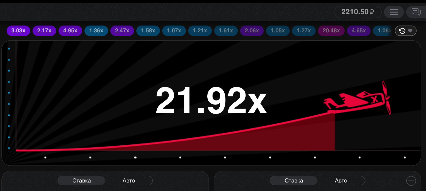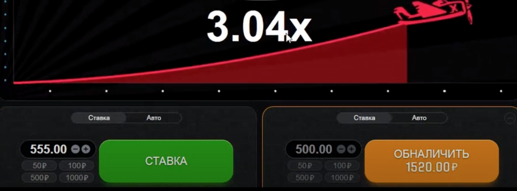 За один раунд игрок может открыть сразу две панели сайта и делать две ставки одновременно.