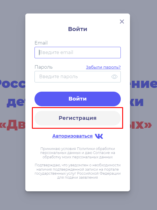 Как зарегистрироваться в движении первых пошаговая инструкция