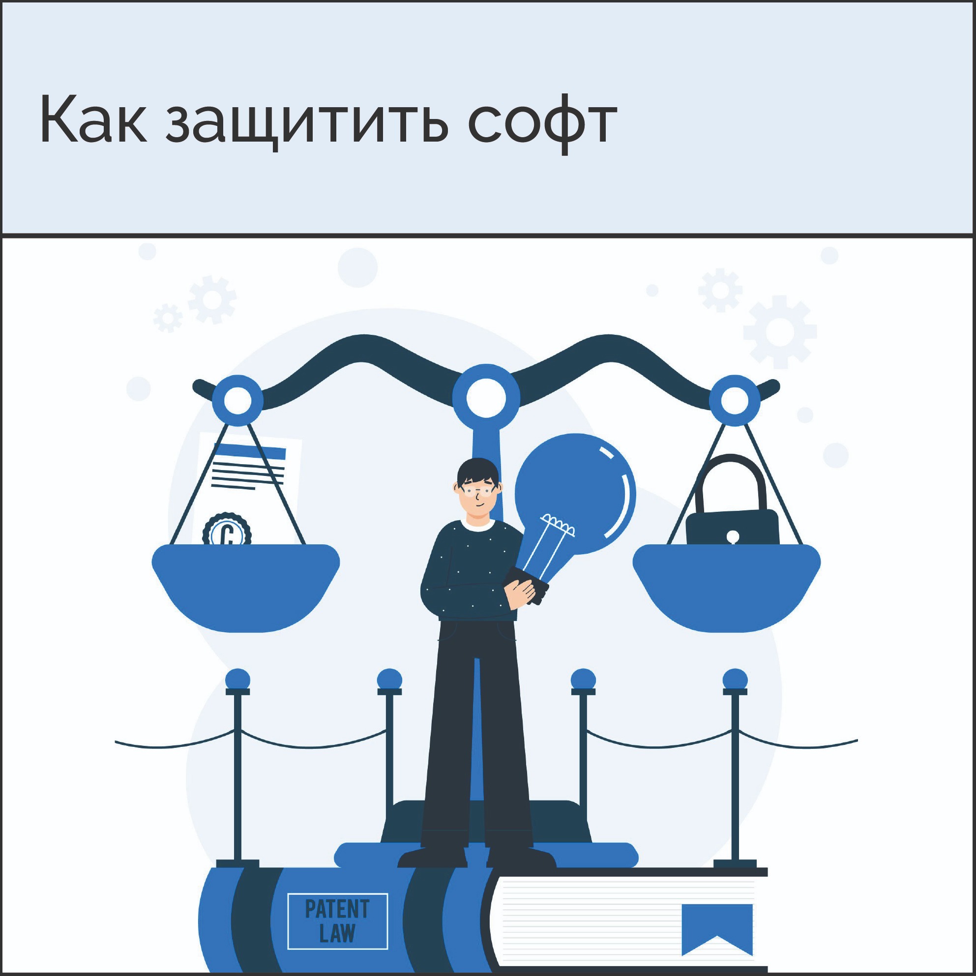 Тем не менее, во многих случаях необходимы "правовые" способы защиты интеллектуальной собственности. Так как нас в первую очередь интересует создание технологических бизнесов, поговорим о том, как классические инструменты - патенты и авторское право - позволяют защищать программное обеспечение.