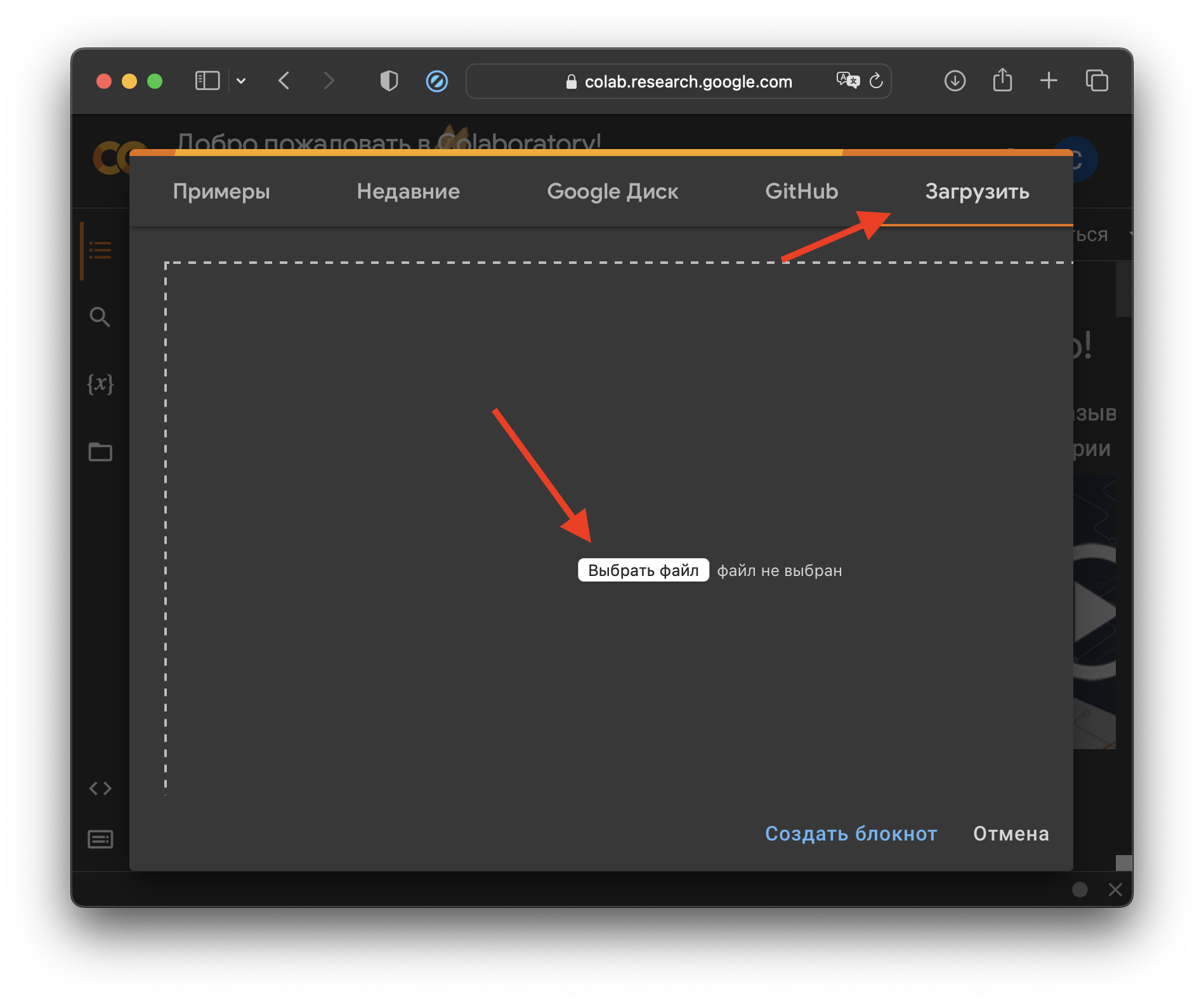 Шаг 5. Загружаем только что сохранённый файл в Colab