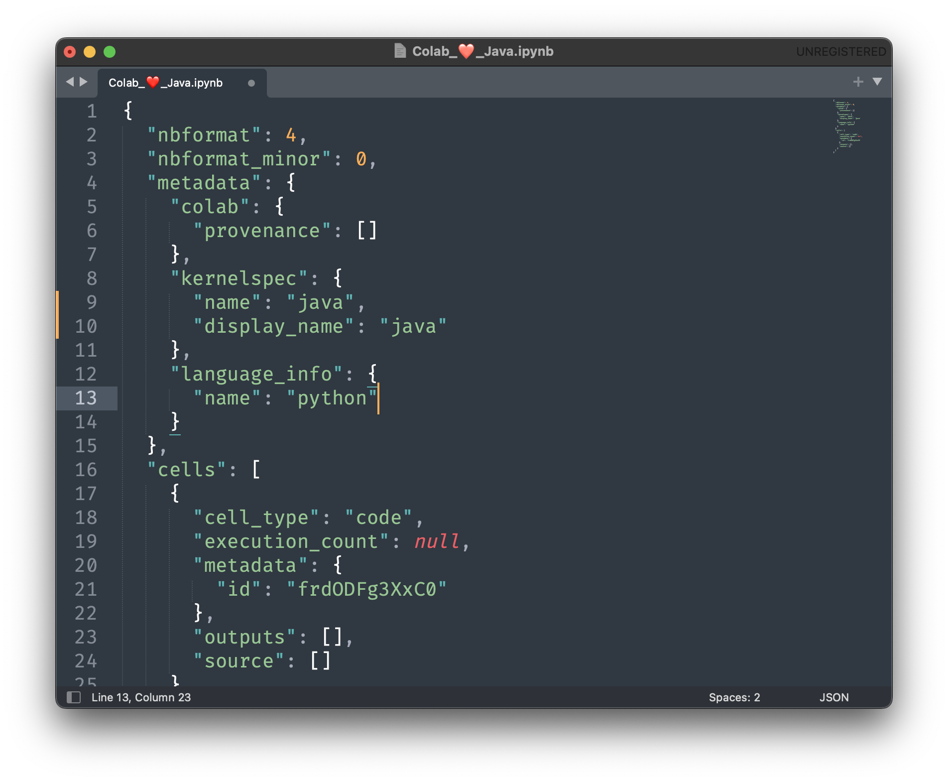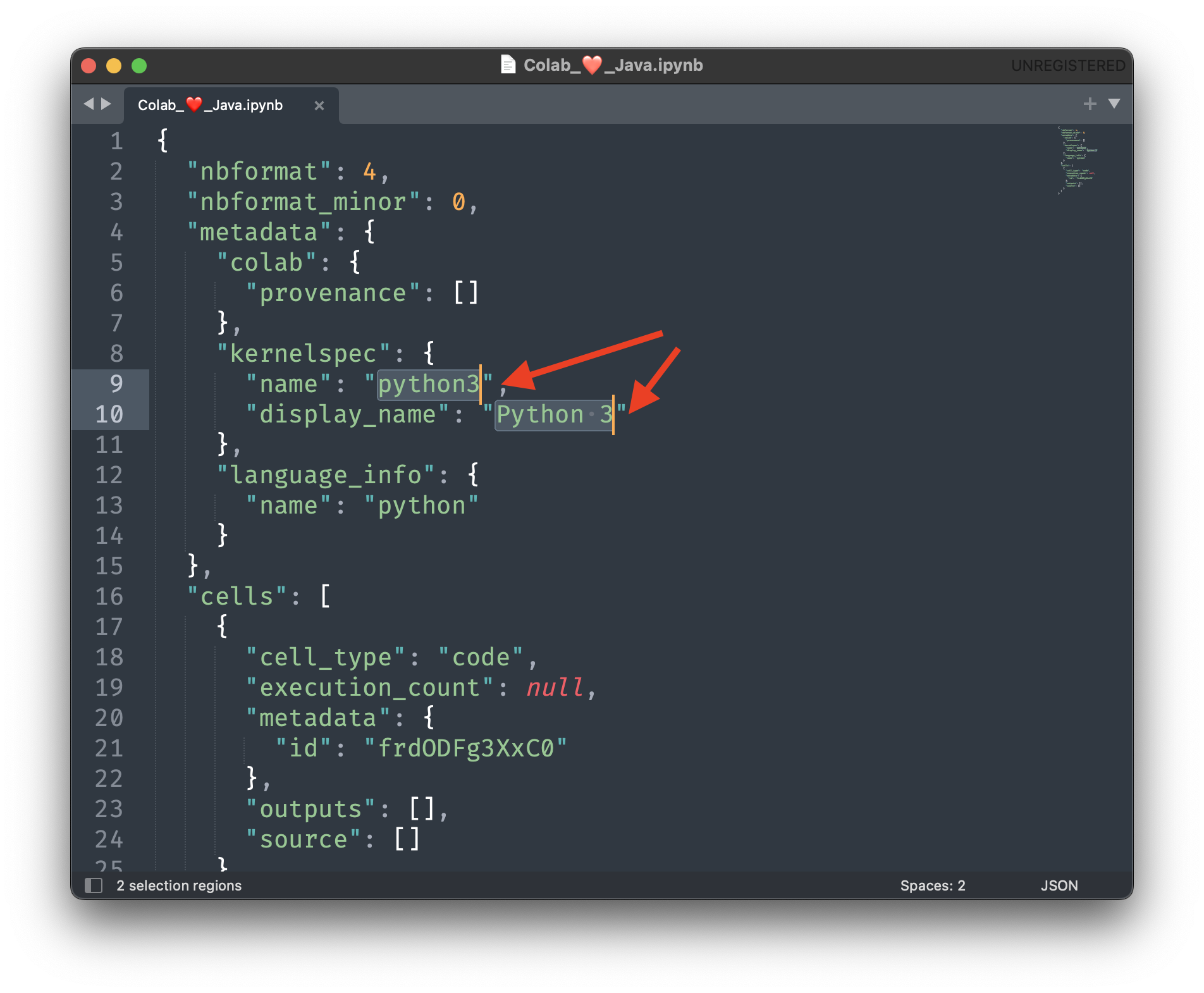 В открывшемся файле меняем значение атрибута name с python на java и значение атрибута display_name с Python 3 на java.