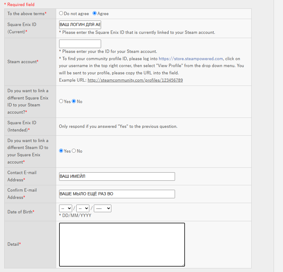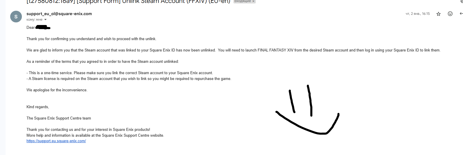 И так, теперь мы можем писать обращение в техподдержку SquareEnix, так как все это происходит через общение с ними напрямую.