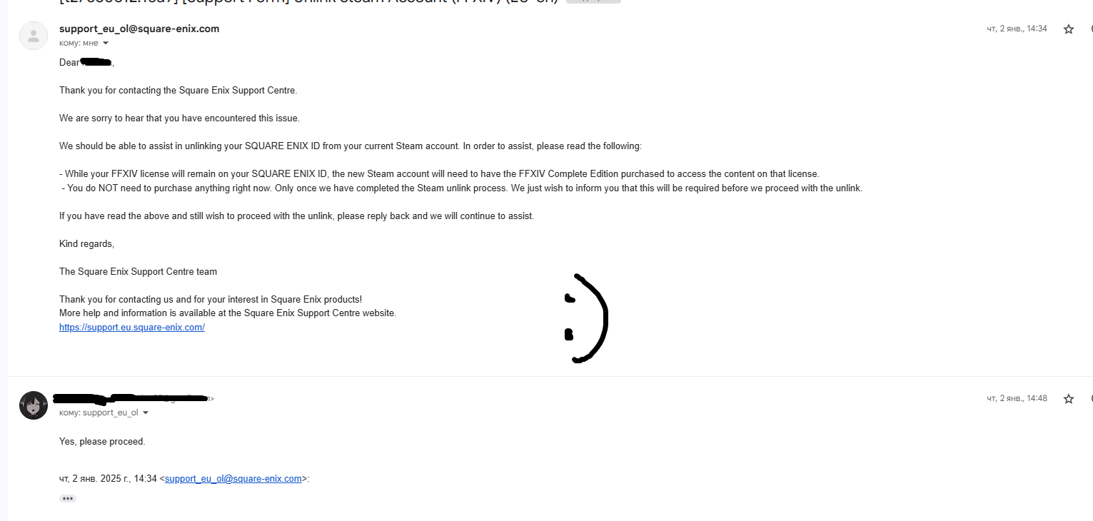 Убедившись в том, что ваш аккаунт готов для так называемого трансфера(на втором аккаунте стима имеется стартовая версия игры, а в самом моге видны все дополнения, можно приступать к самому интересному - запрос в техподдержку SquareEnix)