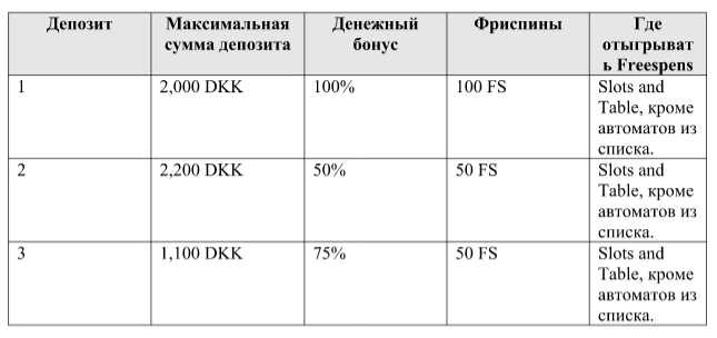 - Thursday: 40% к депозиту. Максимальный лимит: 2 тысячи датской кроны.