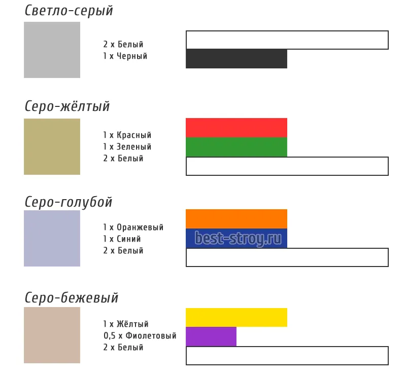Какие цвета смешать для серого цвета 111 фото
