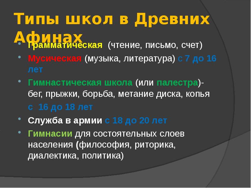 Какие школы были в древней греции