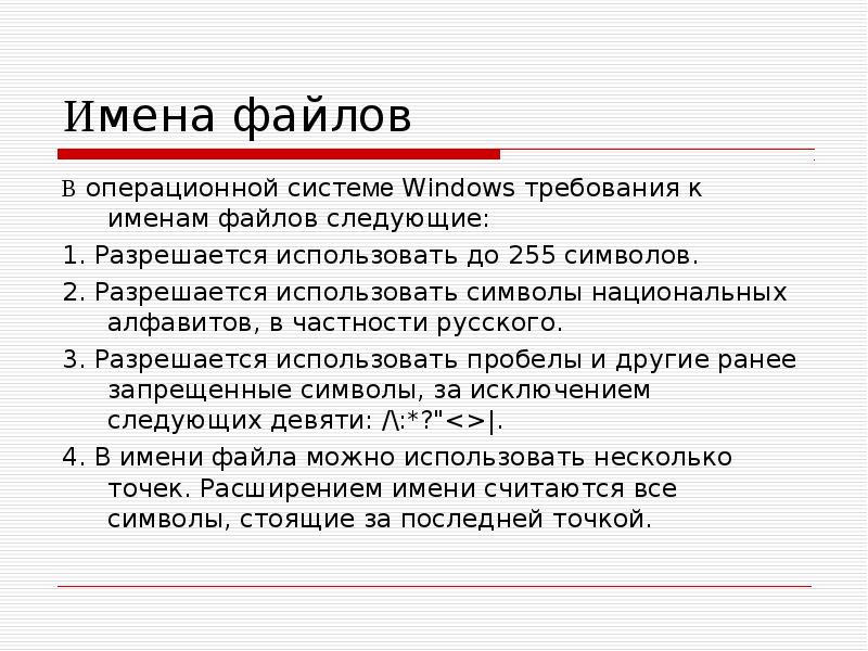 Какие записи имени файла следует соблюдать