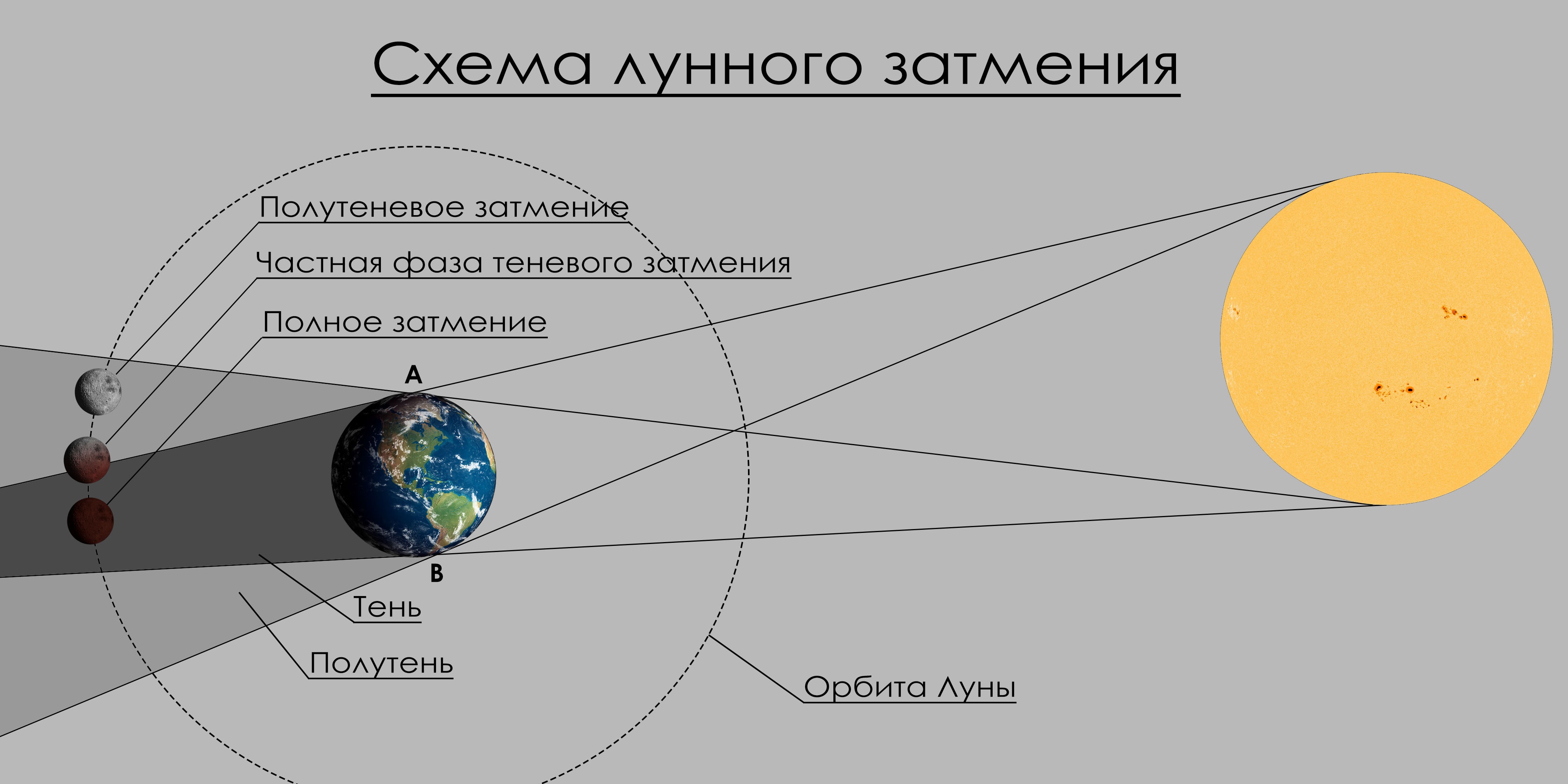 А жителям Земли это доступно во время лунных затмений. Тут ситуация немного отличается: теперь уже небольшая часть солнечного света проходит через толщу земной атмосферы, преломляется, рэлеевски рассеивается, и попадает на Луну, поэтому во время затмения Луна не чёрная, не серая, а красная, как на фото #4.