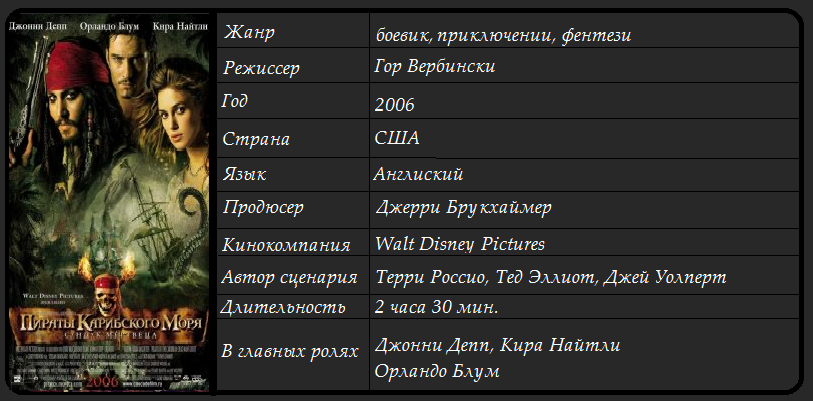 Фильм «Пираты Карибского моря: Сундук мертвеца» (2006) - сюжет, актеры и роли, кадры из фильма .