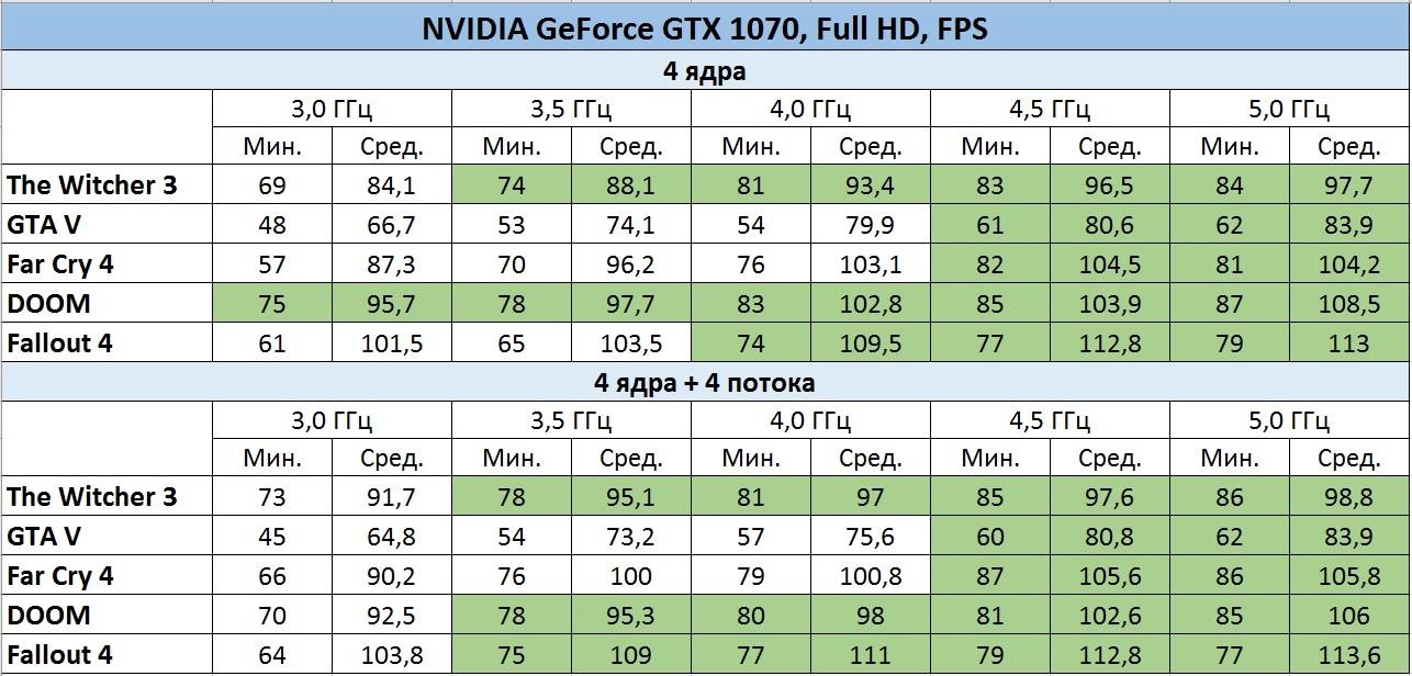 Для GeForce GTX 1070 нужен четырехъядерник Intel на 3,5-4 ГГц Констатирую факт: для раскрытия всего потенциала GeForce GTX 1070 в разрешении Full HD идеально использовать четырехъядерник, работающий на частоте 4 ГГц .