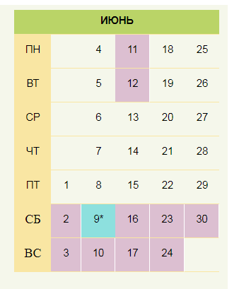 Какой день недели будет в июне