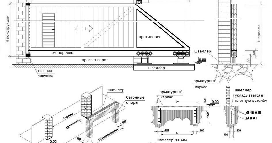 Какой фундамент для откатных ворот 110 фотографий