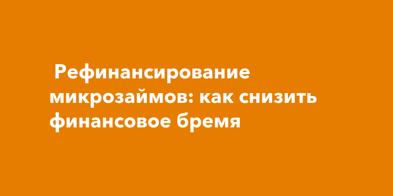 Какой мфо рефинансирует