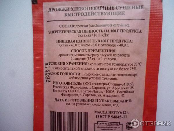 Какой состав дрожжи 110 фото