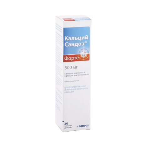 Кальций Сандоз Форте таблетки шипучие 500 мг 20 шт . Препарат для профилактики и лечения дефицита кальция, остеопороза (в комплексной терапии) и лечения рахита и остеомаляции (в комплексной терапии с витамином D3) . от 303 ₽ В корзину Есть в наличии в 0 аптеках . Информация о ценах последний раз обновилась 30 .03 .2020 в 10:42 Производитель Фамар Орлеан