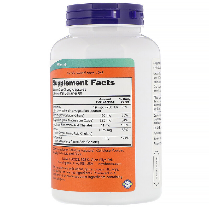 NOW Calcium Citrate Caps, Кальций Цитрат + Минералы + Д2 . . .