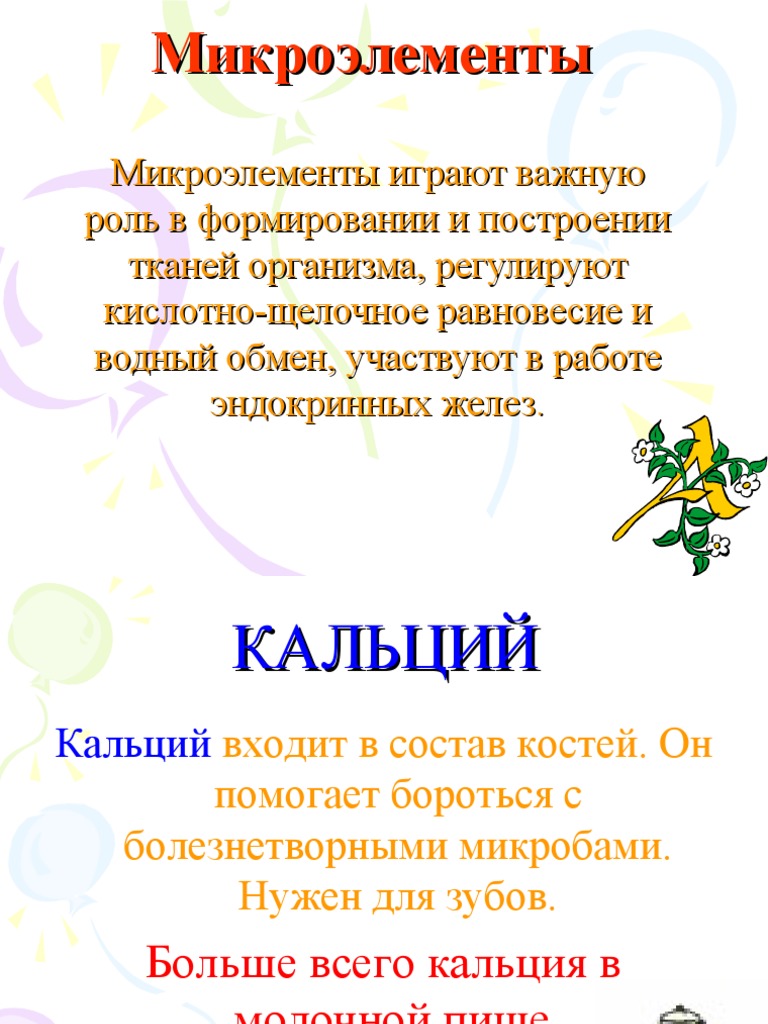 Для чего нужен : кальций, фтор, фосфор, калий, железо . . .