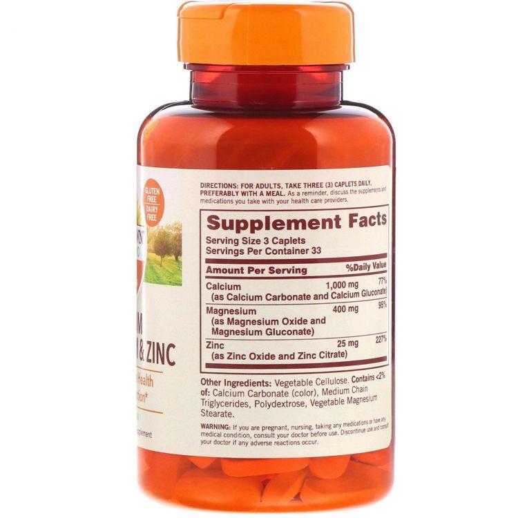 Sundown Naturals, Кальций, магний и цинк, 100 капсул - отзывы, купить с . . .