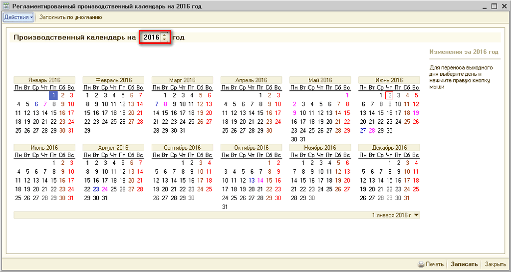 Календарь 2016 г