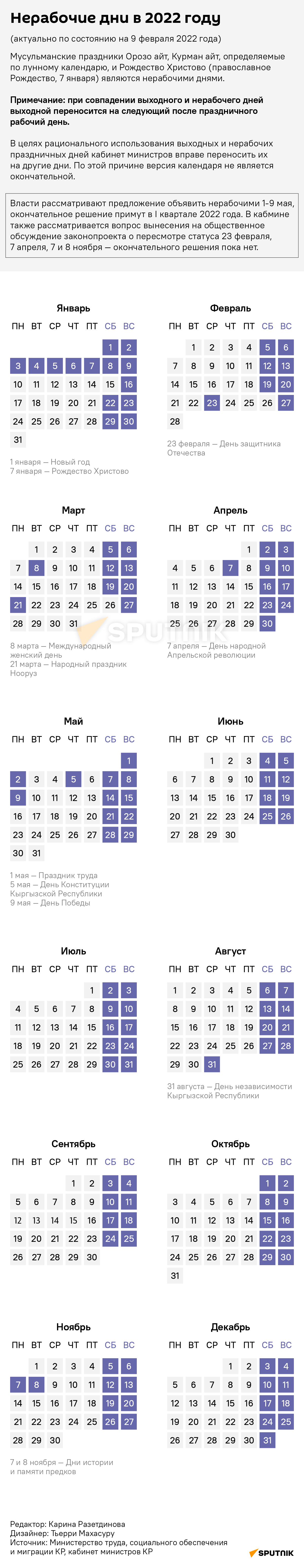 Производственный календарь на 2022 год с праздниками