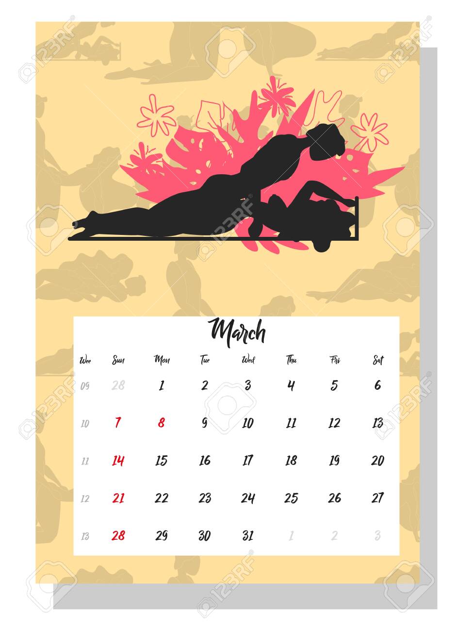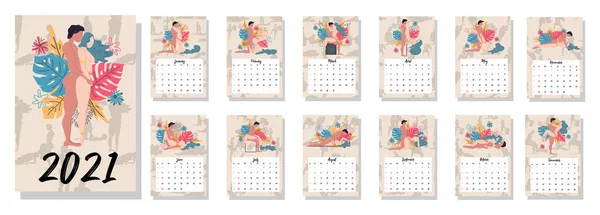 Концептуальный календарь на 2021 год . Красивые пары для каждого месяца года, силуэты, отношения, семья, Кама Сутра позирует . Люди занимаются любовью . Концептуальный календарь на 2021 год . . .