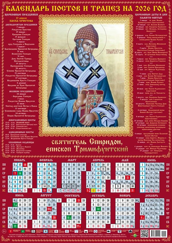 Календарь апостольского поста в 2026