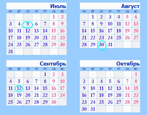 Календарь август 2017