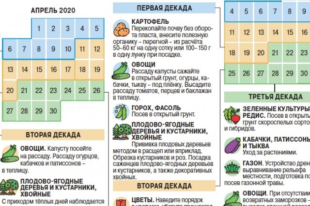 Календарь дачных работ