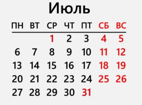 Календарь июль 20
